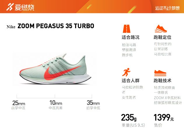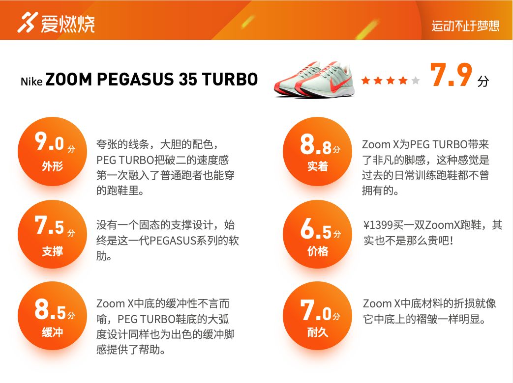 这丝顾虑终于随着Nike Zoom Pegasus 35 Turbo的市售而烟消云散,那么这双搭载ZoomX动力的Peg Turbo能够满足普通跑者们对于速度的幻想么?
