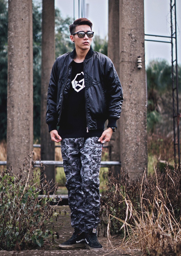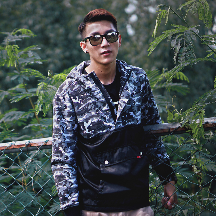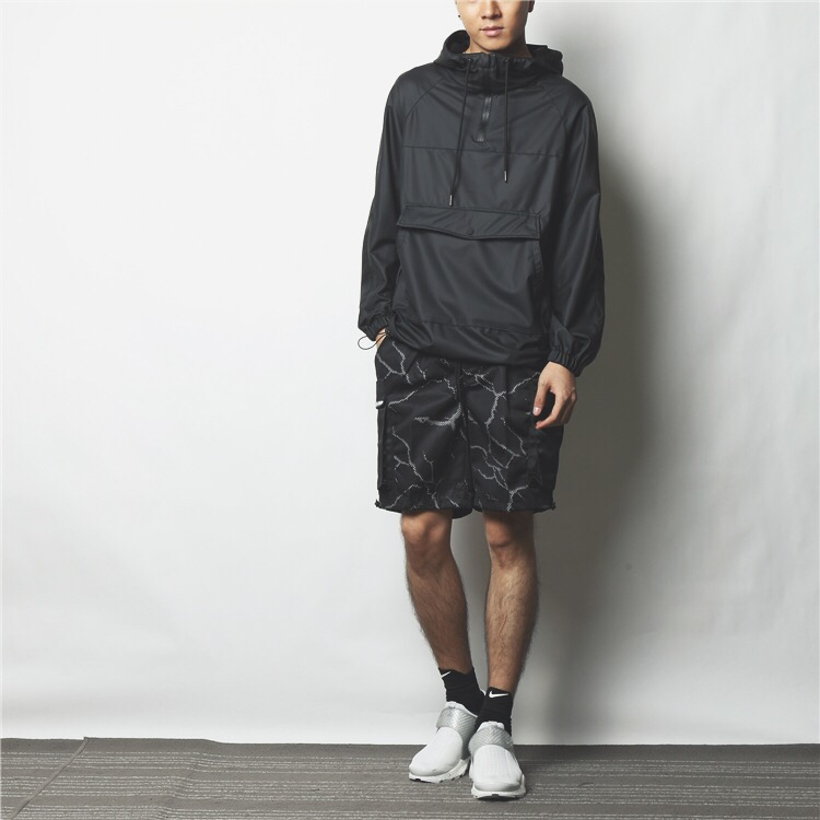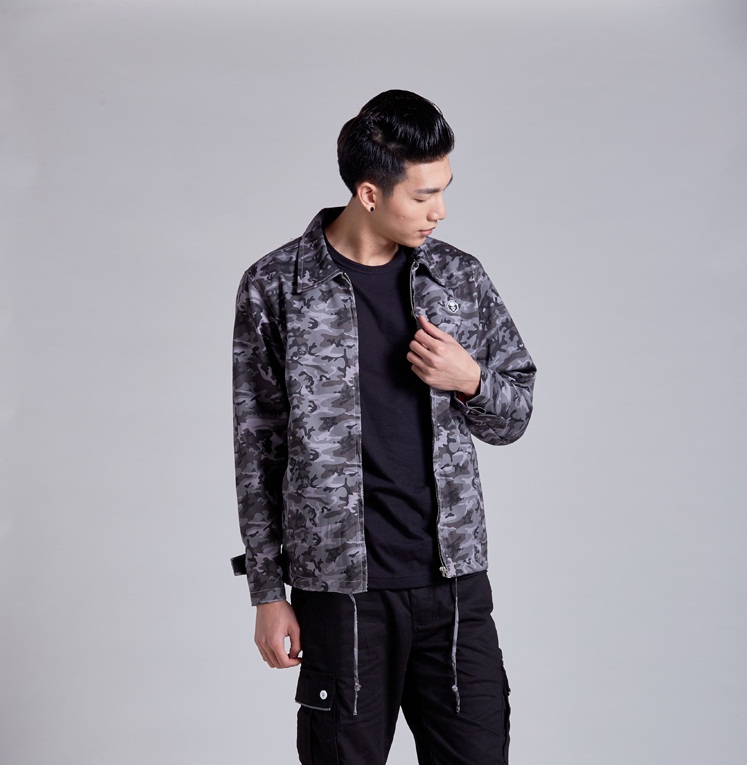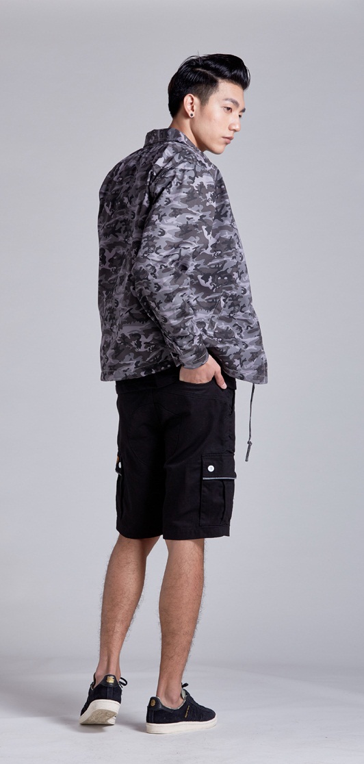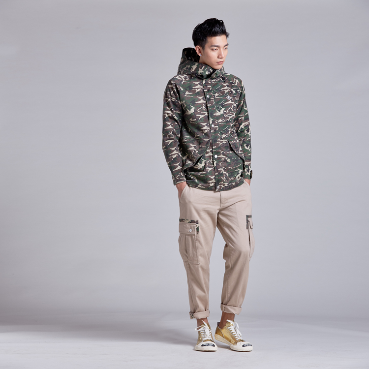 简单的教练外套,使用了004原创的迷彩图纹,很简单但是通过加入甲骨文字“金木水火土”这个传统的五行元素,让它拥有了一个更有趣的特性。