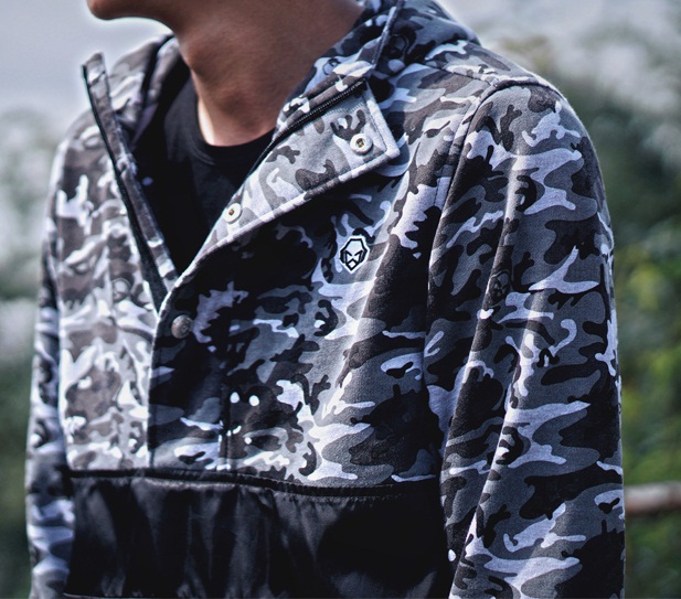 把传统的迷彩图案加入了甲骨文“金木水火土”的元素,让大家熟悉的迷彩具备了新的特性,灰色迷彩也属于市场上比较少见的配色,更加新鲜