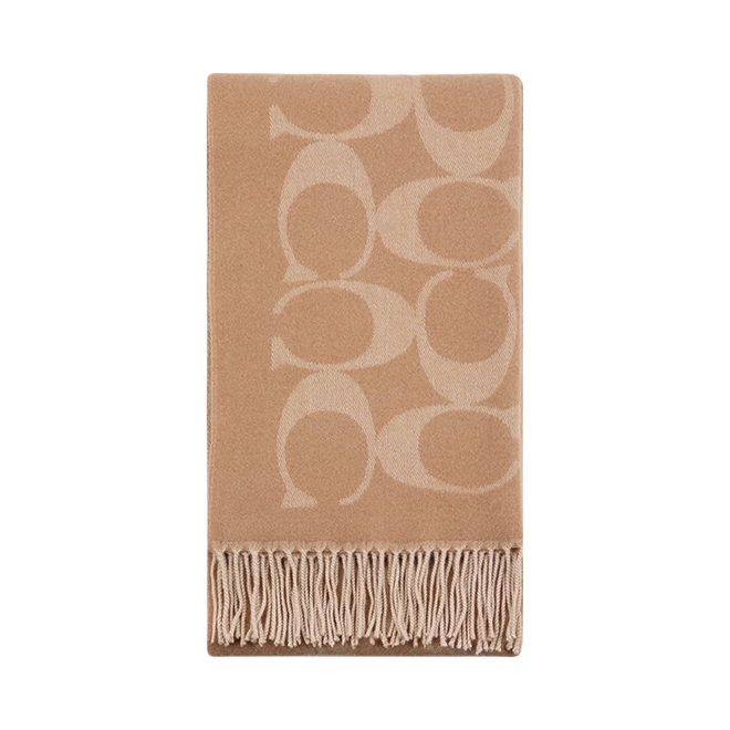 Coach 围巾 长款流苏绒线字母印花标志山羊绒大尺寸围巾 CU807 驼色CAM