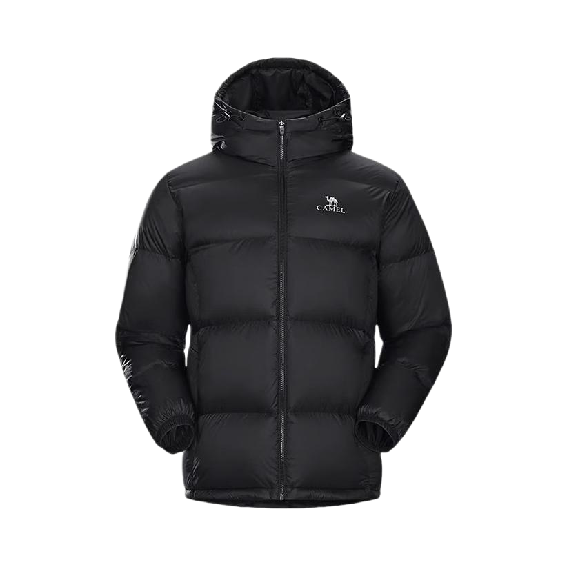Camel/骆驼 暖绒系列 石墨烯自发热防寒加厚保暖立领连帽高蓬白鸭绒羽绒服 A1W2PN121N5 黑