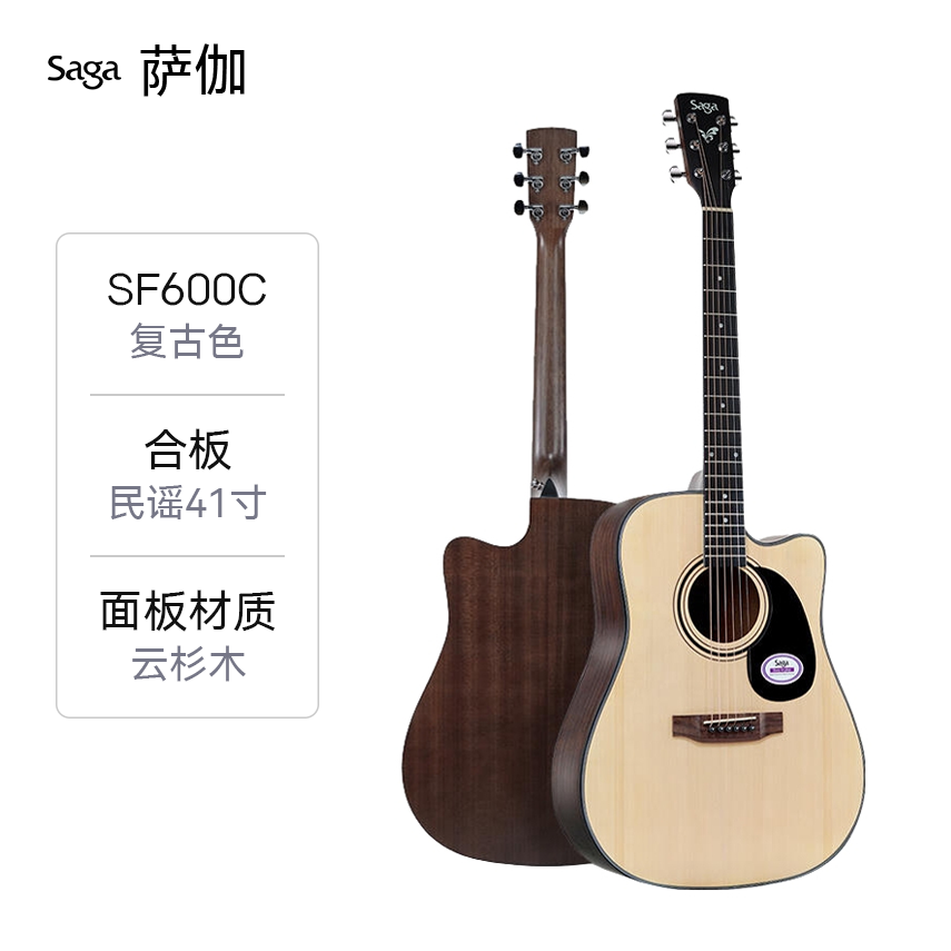 萨伽 SF600/SF600C/SA600C/GS600初学者入门民谣木吉他 SF600C原木D桶缺角民谣41寸