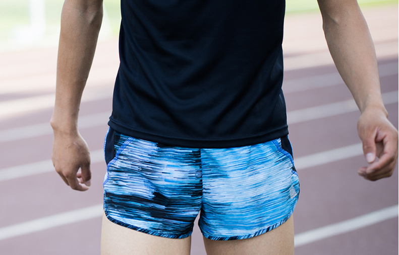 此次,笔者要推荐的是必迈的一体织速干短袖与三分短裤。首先是这款一体织短袖带有温控性能,且面料带有弹力,穿上以后舒适度非常好。采用一体织无缝拼接工艺使得T恤与皮肤接触较为舒适。而在配色选择方面,必迈的这款短袖多以不同的花纱配色作为主色调。有蓝、灰、红等配色可供选择。同时有女款修身版型,适合身材较为标准的女跑友。
