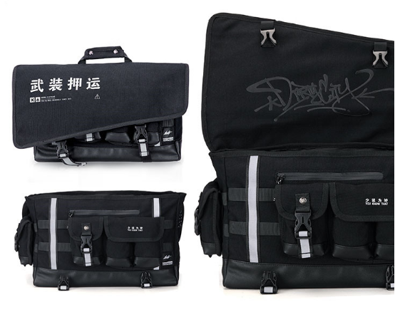 来自Comback的一款斜挎包,风格硬朗设计独特。模仿警察腰部挎包的设计,反光条和三个附袋被外包覆盖,配上“武装押运”的字符,也会成为你平时出行的搭配利器。