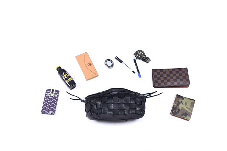 采用了编制风格的腰包,编织材质使用的是质感较强的人造革。主袋旁的两个侧边附带很好地利用了空余面积放置零碎物件。而包内的夹层也能有效的防止放置于隔层内的手机免受钥匙等金属物的刮伤。