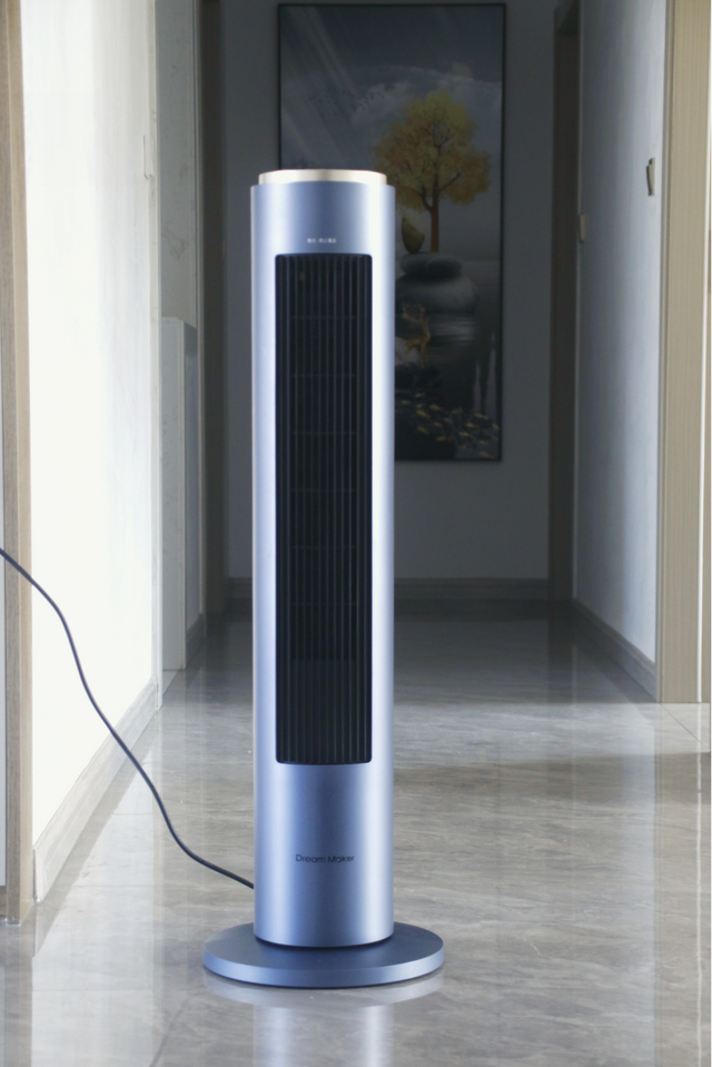 虽然产品的造型和普通的塔扇很像,但是细看之后就能发现,造梦者无叶净化冷暖扇的机身尺寸要比普通的塔扇要大一些,主要原因就是内部不仅有风轮还有制热片。
