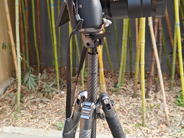 另一个是,产品虽然的稳定性没得说,但是有时候在沙滩、坡地地等不稳定地形上或者风力超大的情况下,建议在中轴底部的挂钩挂一些重物用来增加三脚架的稳定性,增强极端环境下三脚架稳定性和画面的清晰度。
