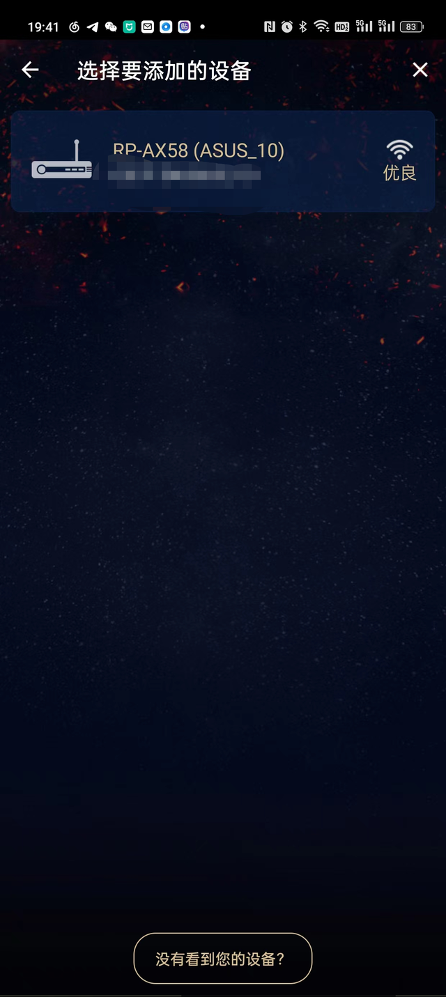 安装完成后不需要对华硕RP-AX58做任何操作,正常开机后打开手机进入App,点击右上角的+号。