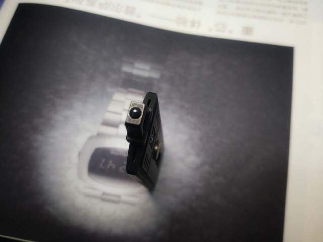 金色的方块是出刀按键,而金色在黑色中还有点睛一般的点缀效果。周的金文则是在石洗加黑后光了一刀(CNC或磨床),这时又凸显出闪耀的银色金属光泽,。金色、银色在黑色中格外亮眼。