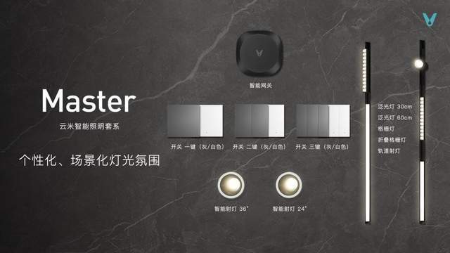 此次云米还展出了AI智能照明套系新品,全新无主灯方案,涵盖智能网关、智能开关、智能射灯以及轨道射灯多款产品,为用户提供全屋灯光场景。
