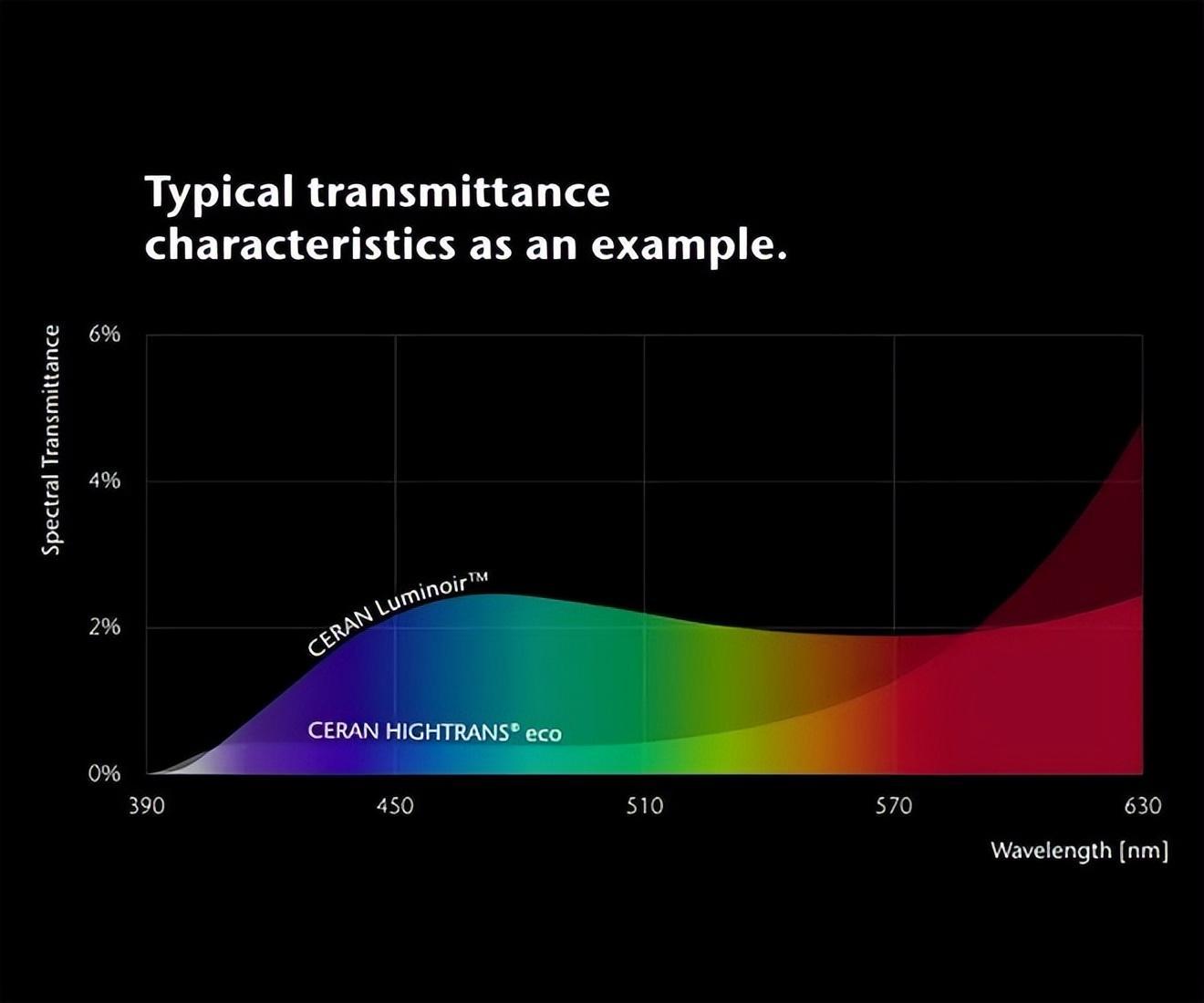 由于具有比传统方案更高的透光性能,白光和蓝光可以更明亮、更清晰地透过玻璃面板,尤其是白色光的亮度提升至五倍。其他颜色组合也可以透过微晶玻璃进行高质量传输,像水晶般清晰透亮,这对未来的智能厨房电器至关重要,能实现更加直观地控制元件、食谱显示、视觉提示、厨房电器的智能互联等数字化功能。