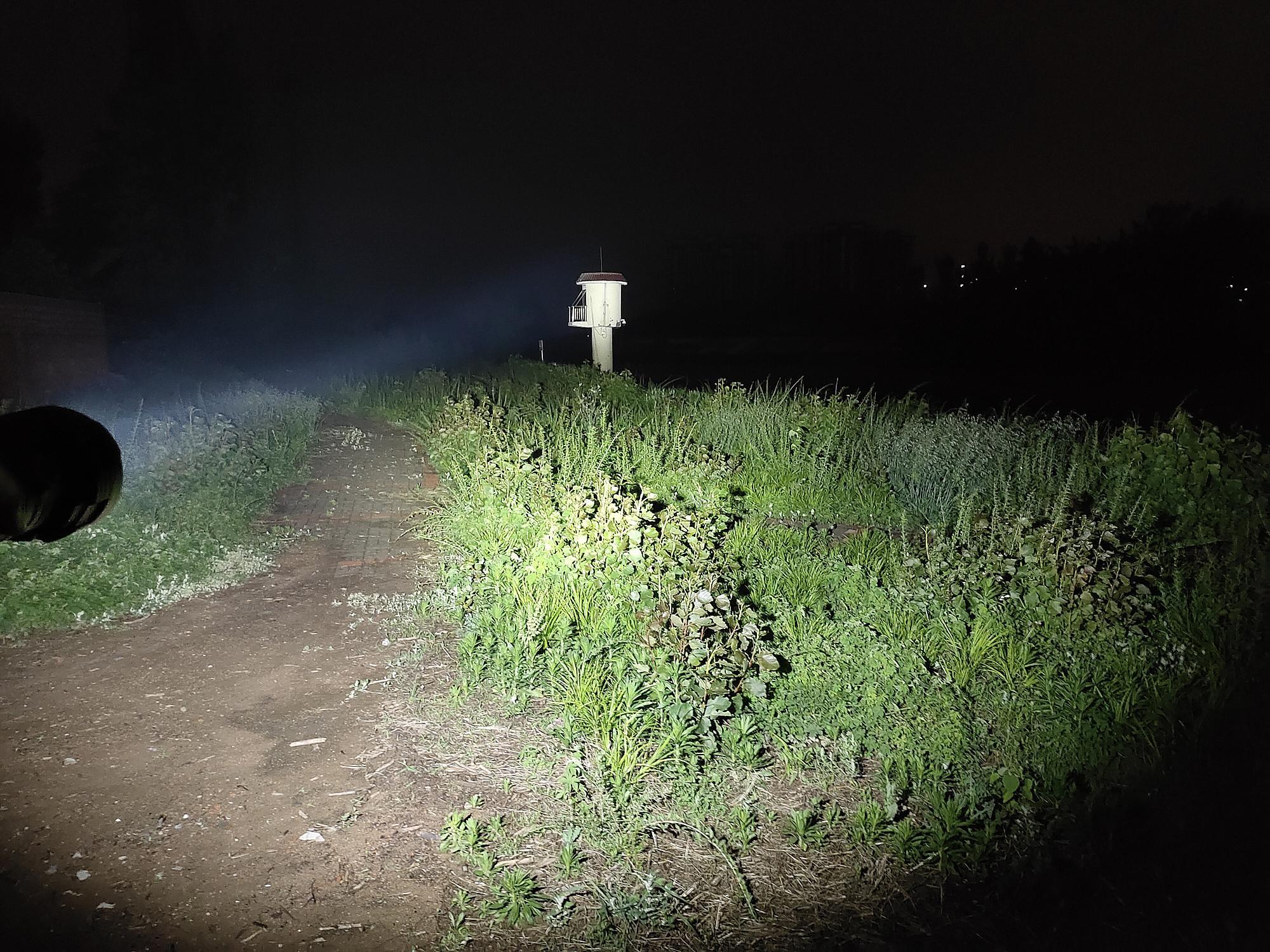 而在开启聚光模式后,极亮下可达到900米的射程,在深林山路上搜救是十分好使的。基本上指哪亮哪,远处的闸桥、瞭望楼细节都能清楚捕捉到。