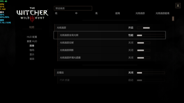 选择4K全高画质并开启光追,户外FPS居然能有40左右。