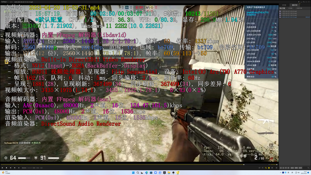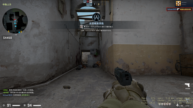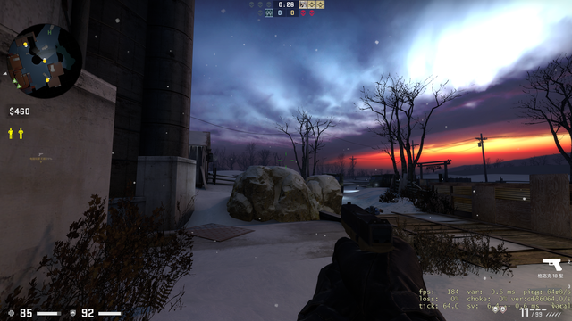 CS-GO配置游戏画质为4K+全高,游戏本身如下图所示,FPS为90-140中间。