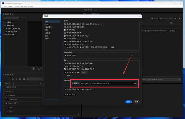 同样使用AdobeMediaEncoder 2023作为输出软件,由于测试结果的时间高出上面两组不少,做了三次测试结果都相同,首选项中确认AME使用的是GPU渲染。