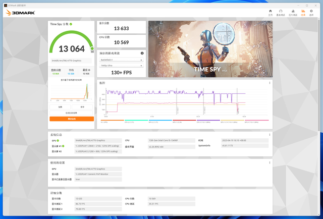 可能是我这台主力机后台开了一些应用的原因,使用13600K时的显卡数据比13490F略低一丢丢,,并且不受内存容量的影响。