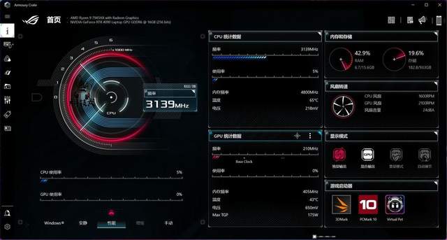 需要注意的是在奥创中心中开启“增强模式”后,其可以自动加载显卡超频,基础频率提升到1640MHz,Boost频率提升到2090MHz。ROG魔霸7 Plus超能版还支持双显三模显卡热切换功能,玩家在切换到独显输出模式时不用再重启电脑,用起来还是非常方便的。