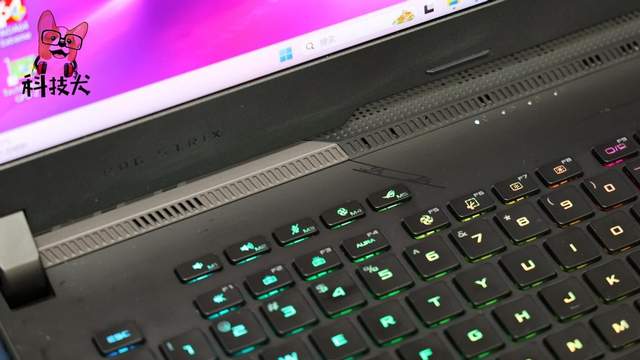 ROG魔霸7 Plus超能版采用了全尺寸键盘的设计,在主键区上方还设置了音量减/加、麦克风静音、风扇模式和奥创智控中心的快捷按键,操作起来非常方便。