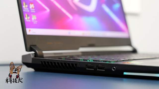 在机身左侧提供了2个USB 3.2 Gen1 Type-A×2接口,让ROG魔霸7 Plus超能版采在众多游戏本中显得格外的独特。