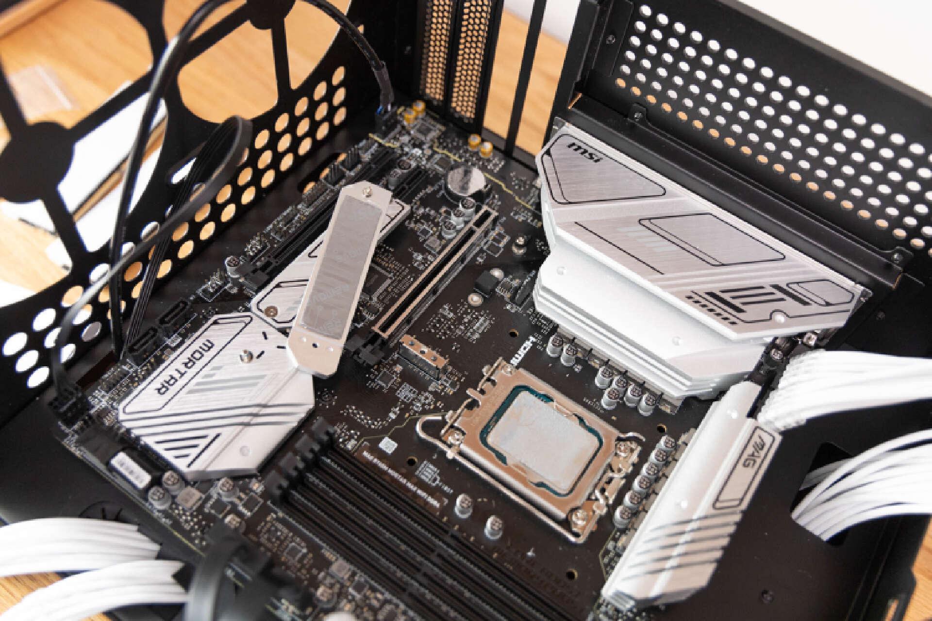 主板使用了经典的黑色PCB加银色冰霜装甲配色。散热装甲整体性和覆盖面积在这个价位下显得及其给力。主板安装后,可以看到机箱上下左右的空间都预留的非常充足,配合走线槽可以轻松理线。