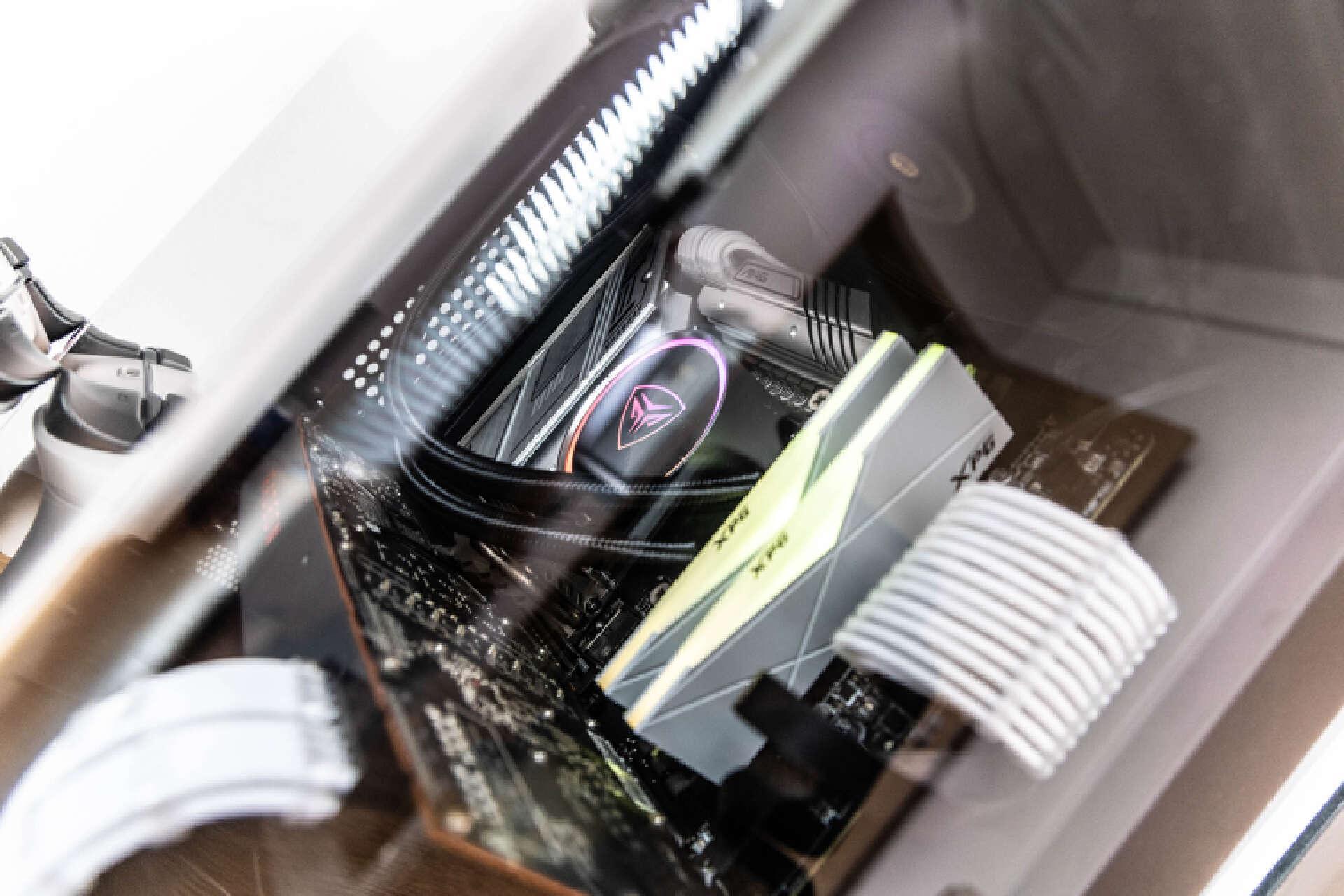 因为我这里不用后排风,所以水管从后面弯折,其实从前面走也行,但是会挡一点内存,看个人喜好。