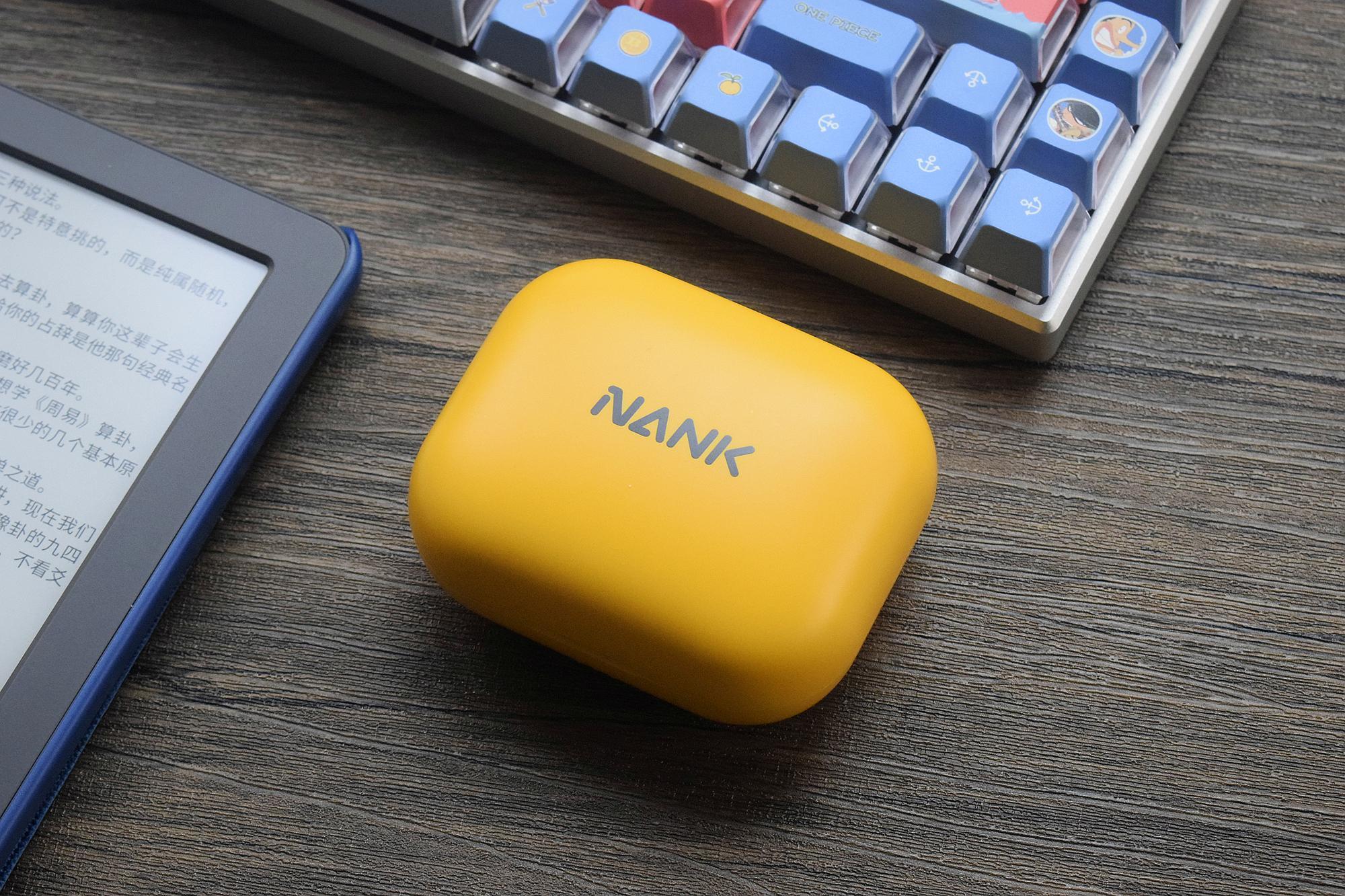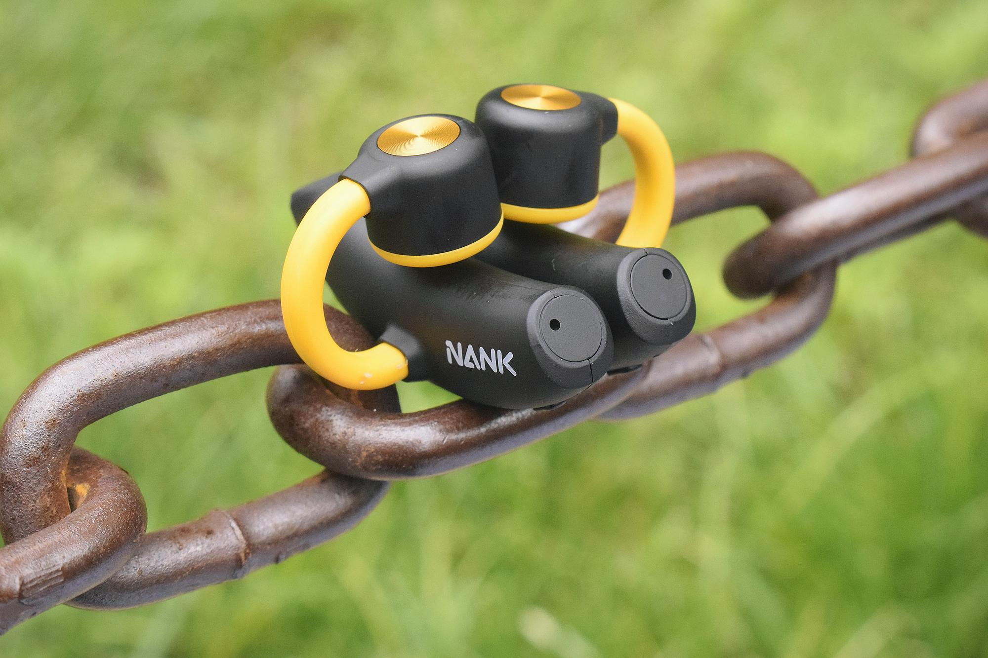 左右耳机均有醒目的“NANK”LOGO,耳机重量只有15克,加上其采用了人体工学设计的航空级柔软材质,久戴亦不会有压力感,可以做到轻若无物,持久听歌。