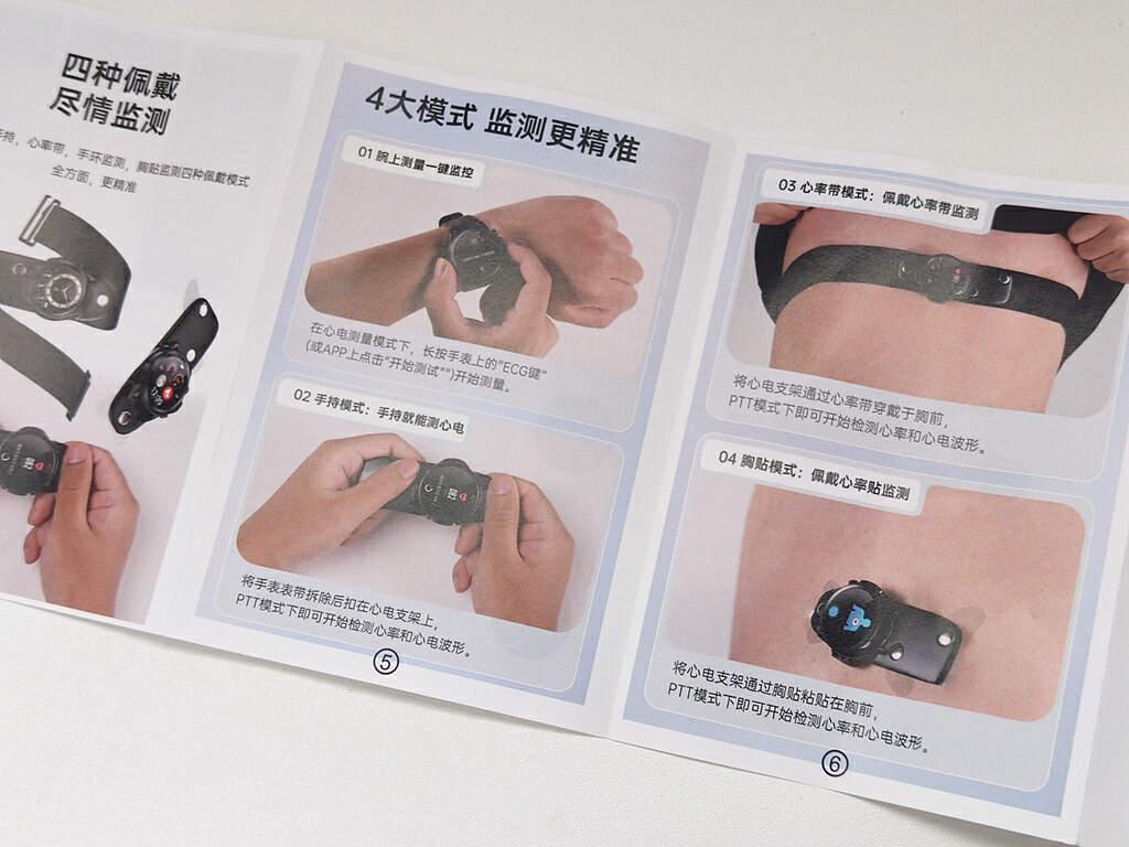 这次的产品清单非常丰富,包括:dido智能手表E56S 、磁吸充电线、心率带、心电支架、心电贴、用户手册和保修卡(合格证);