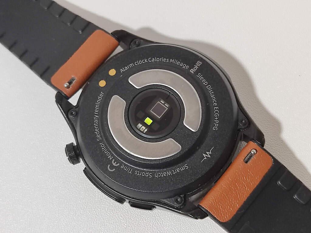 手表背面集成了金属电极、多个高精度传感器和磁吸充电触点。