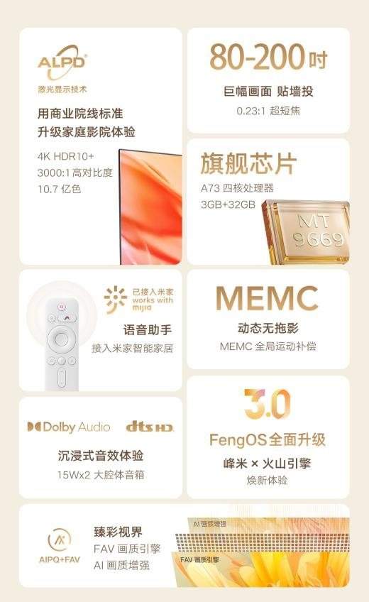 峰米此前发布的激光电视 C3 今日正式开卖,售价 11999 元。