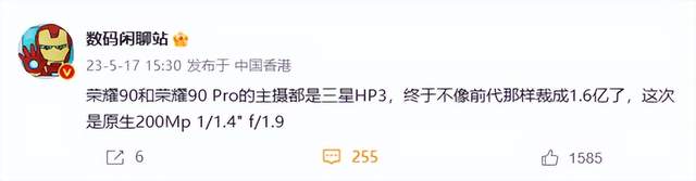 据悉,荣耀90系列有两款新机,分别是荣耀90和荣耀90 Pro。博主“数码闲聊站”今日透露,荣耀90系列均采用三星HP3主摄,不再像荣耀80系列那样裁成1.6亿,而是采用原生200MP,尺寸为1/1.4"。