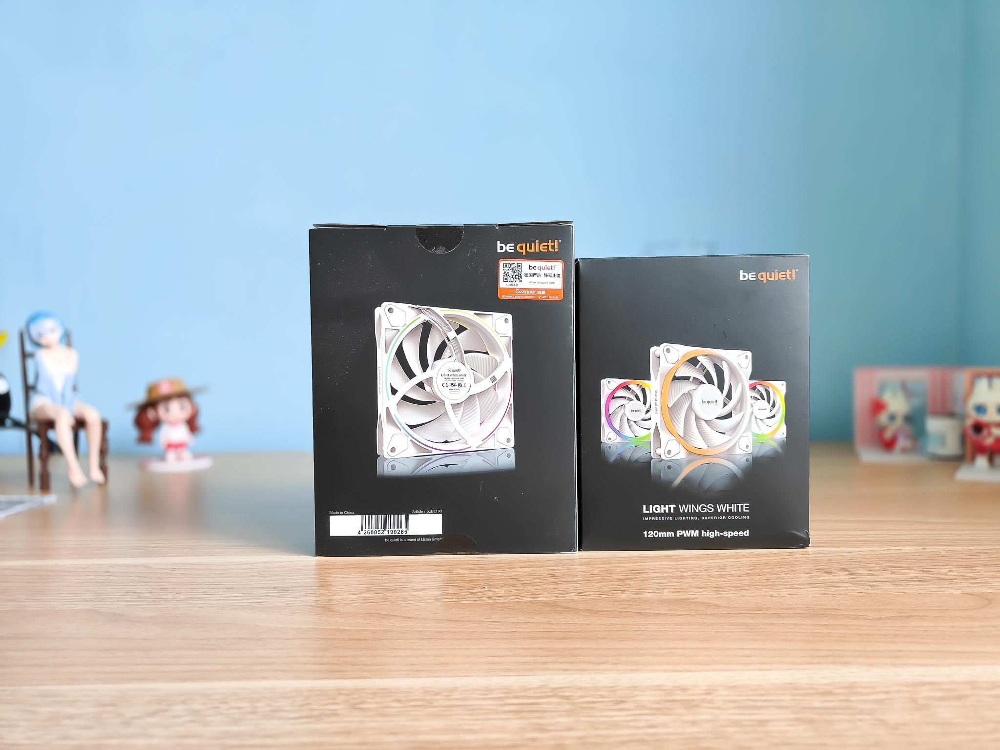 解决的方法就是一个,选择静音风扇。所以这次我选择了的德商德静界的LIGHT WINGS WHITE套装风扇。这款风扇是一套3只,属于LIGHT WINGS系列,最后的WHITE是代表白色的意思,也有黑色的可以选择。