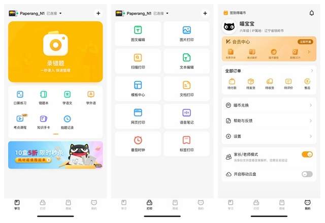 关于喵喵机智能学习打印机N1的体验就和大家分享到这里,作为它的新用户我说一下我的体验感受。打印方面,快速、静音、清晰是我对它的评价;功能支持方面,题库丰富、错题整理组卷是亮点,趣味功能丰富,能够提高孩子的积极性。从学习角度出发,有了这款新品智能学习打印机,孩子在学习时可以完全脱离手机,360°错题闭环学习法能够有针对性的帮助孩子攻克学习难点。