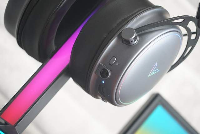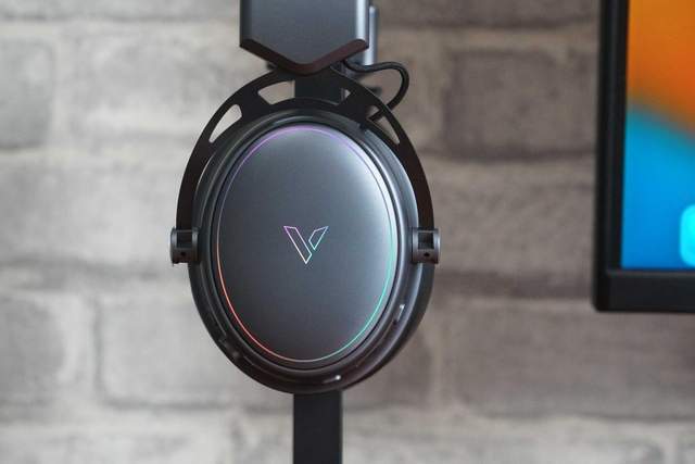 耳壳设有环状RGB灯带,中间则是雷柏的品牌Logo,炫酷的灯效能够为我们营造出沉浸式的游戏氛围,如果你的电脑主机同样拥有RGB灯效,效果翻倍!