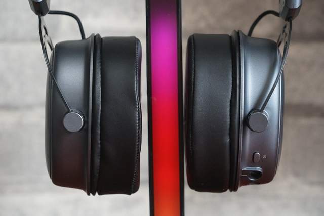 在耳壳的侧边还设有一些操控按键,例如电源键、模式切换开关、音量调节按键、灯效开关等等。