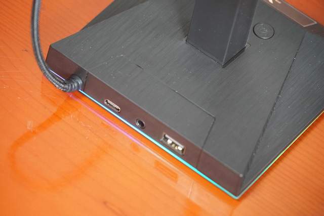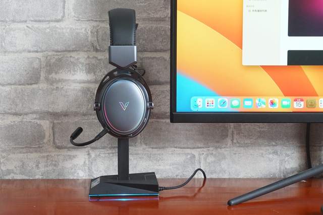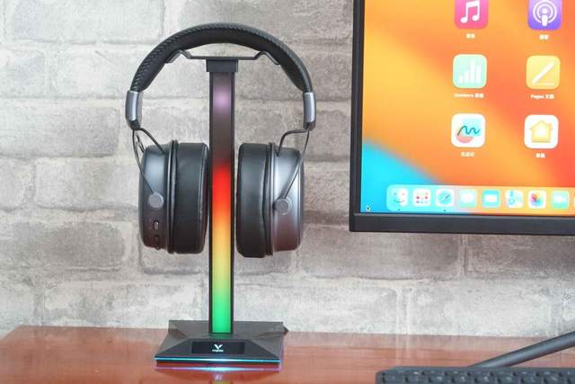 对了,还忘了和大家分享雷柏VH10REG耳机支架,这款支架有这么几处亮点,第一就是可自由调节多种幻彩RGB声光控节奏灯;第二就是底座侧边设有多个扩展接口,即USB2.0、3.5mm音频接口、Type-C接口,功能就不需要我再做解答了吧?当然了,最重要的一点就是它能够稳固的竖立在桌面,为耳机提供一个最优的放置空间。