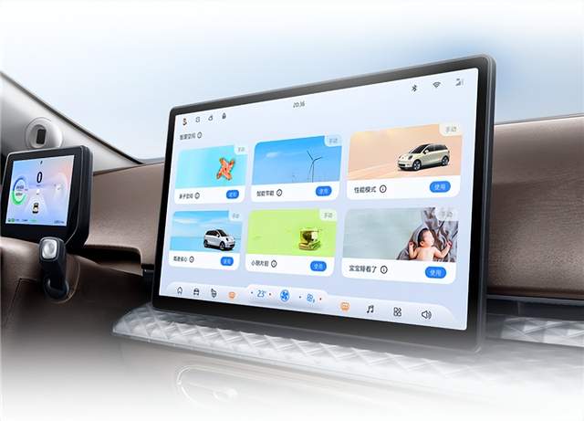 内饰方面,该车确实很是简约时尚,车内多使用圆角造型,视觉效果柔和,双辐式多功能方向盘后方是悬浮式液晶屏,同时还配有大尺寸中控屏,采用了科大讯飞飞鱼3.0车机系统,支持4音区,同时也支持华为应用生态。