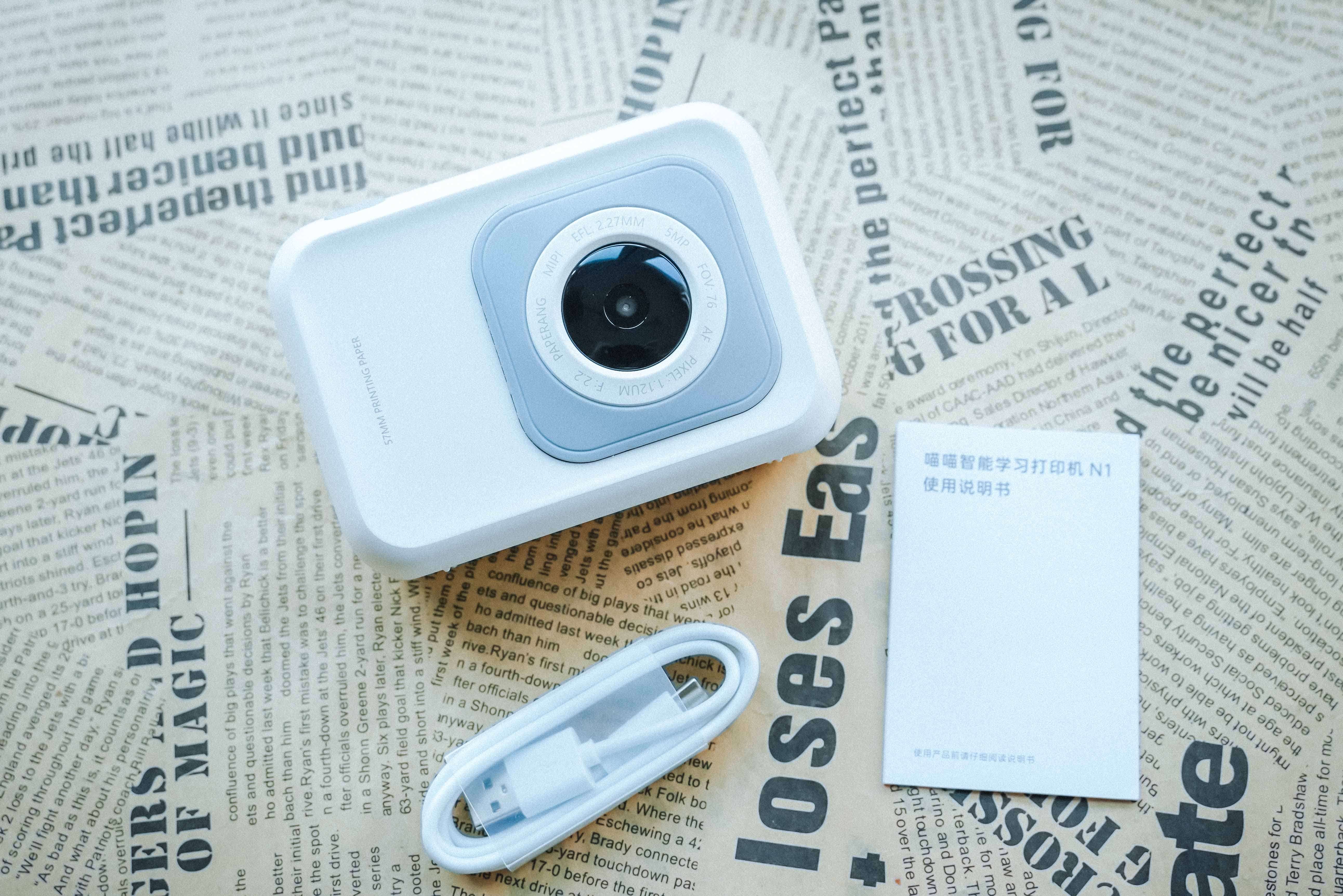打开包装后,除了喵喵机N1本体外,还有一份说明书和USB-C电源线,虽然没有附赠充电头,但使用手机或其他数码产品的充电头也能给N1充电。