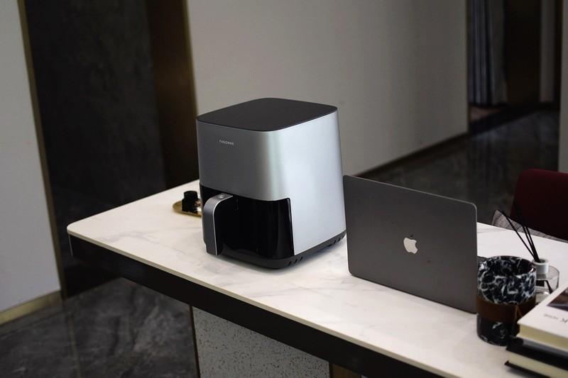快递到了,就直接开封了,这个就是宫菱MAXS空气炸锅,银黑配色,显得很干练、干净。整机5.2kg,功率为1500W,航空级三腔体封装。