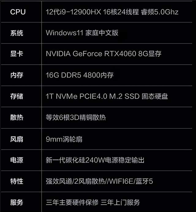 显卡是RTX 4060,满血140W释放的,其他还有16GB内存及1TB PCIe 4.0硬盘,整体硬件配置满足2K 144/165Hz游戏无压力。