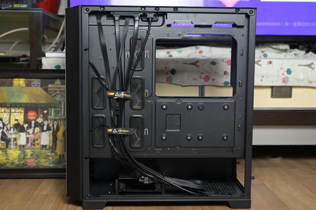 其他方面,机箱的背板上预留了2个2.5英寸SSD硬盘安装位,另有一个多功能硬盘支架,可以安装2个3.5英寸HDD或者2.5英寸SSD。