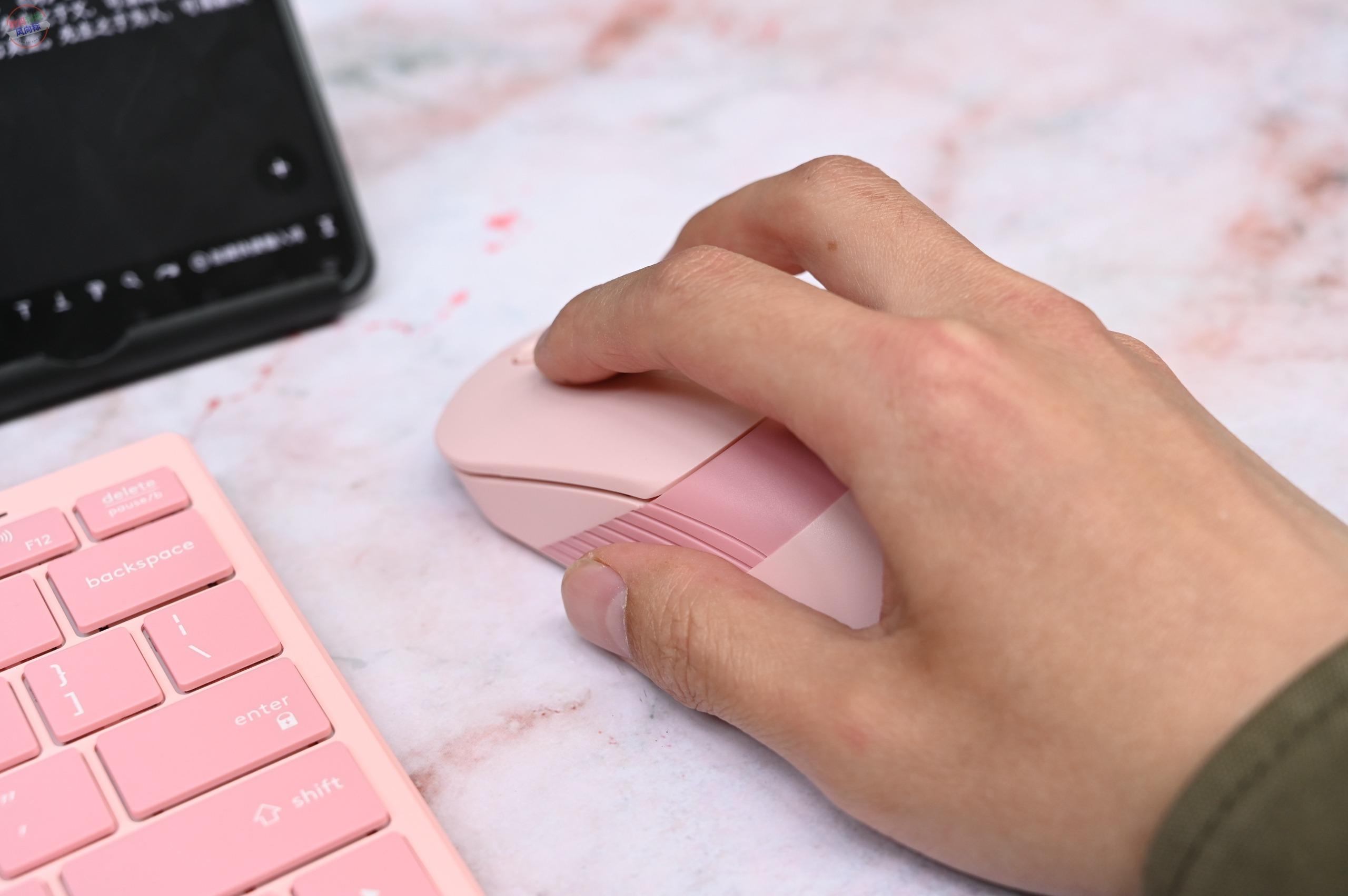 这款鼠标本身的设计很合理,而且手感不错,在它的侧裙区域有防滑设计,并且是加深的颜色,看起来很漂亮,这款鼠标的配色也很多,除了这款元气粉之外,还有石曜黑、象牙白、天幕蓝、抹茶绿等多种选择,整体来讲配色和设计也都是非常时尚的。