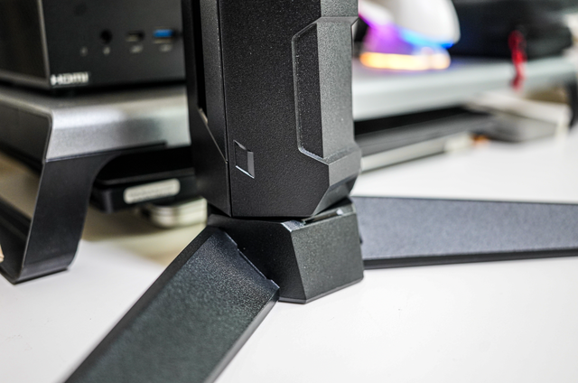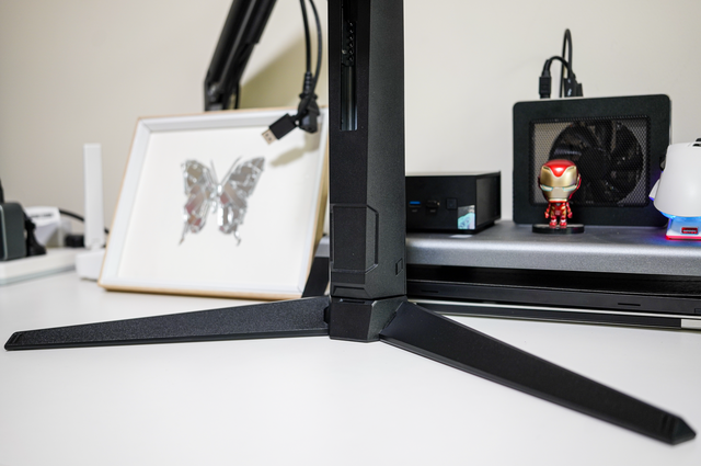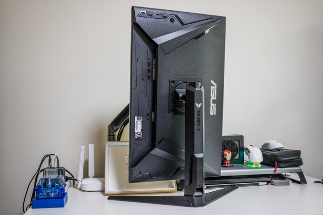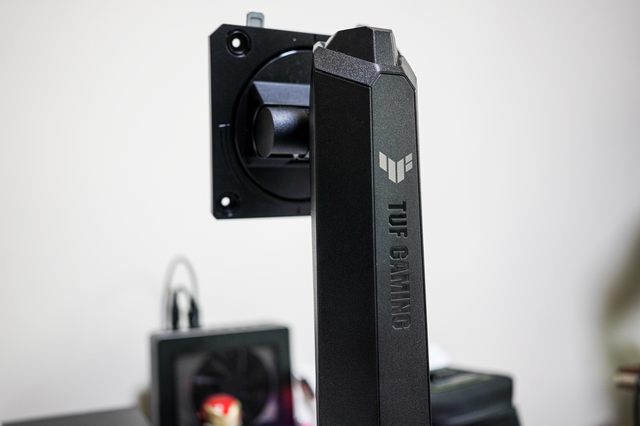 原装支架的顶部是大大的TUF Gaming标志,和显示器本体一样采用多棱角设计,视觉上非常有硬汉型机甲风格。