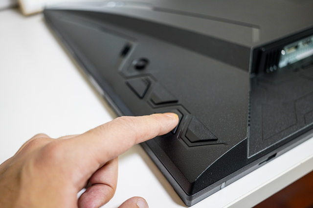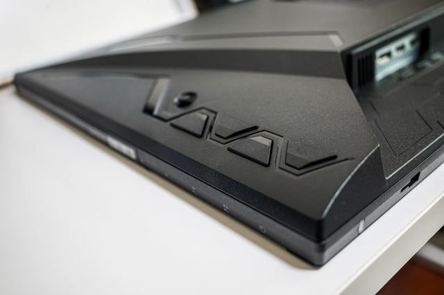 OSD操作按钮设计的相当舒适,包含四颗大面积的控制键和一个十字旋钮,由于华硕小金刚Pro 2023针对游戏的功能比较多,相信看下一段的展示就知道这么设计的好处了。