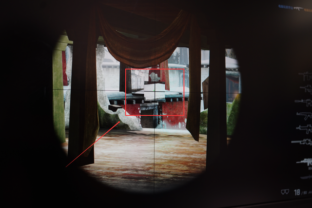 狙击手功能就比较有意思了,开启后如下图所示,会放大游戏中准心部分的画面,开启后四倍镜也会有八倍镜的效果。