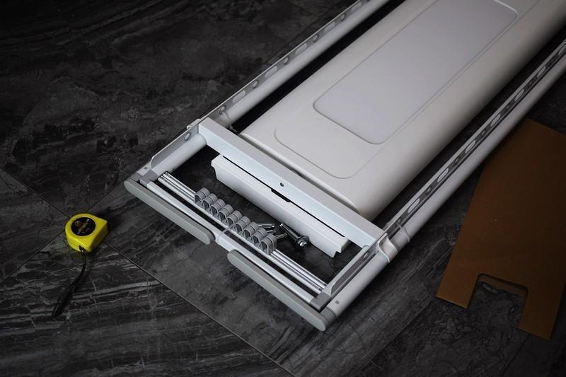 这是安装好的样子,外观上高大上,非简约的风格加上轻薄(99mm)的设计。使米家智能晾衣机 1S能够很好的融入家居中,视觉上也不会产生突兀。