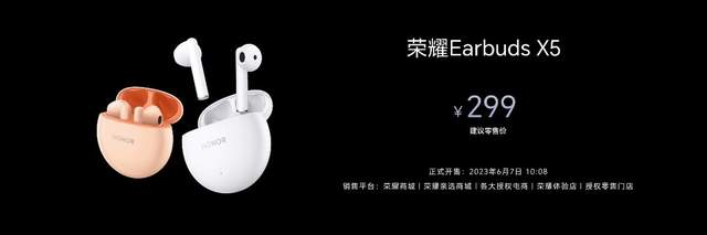 本次随荣耀90系列一同上市的还有荣耀Earbuds X5耳机,该机型采用半入耳设计,单机仅3.8g,结合声电分离架构减小入耳体积带来舒适佩戴体验;13.4mm动圈单元呈现震撼音质效果,还支持双设备连接和快速充电功能,上市价仅需:299元。