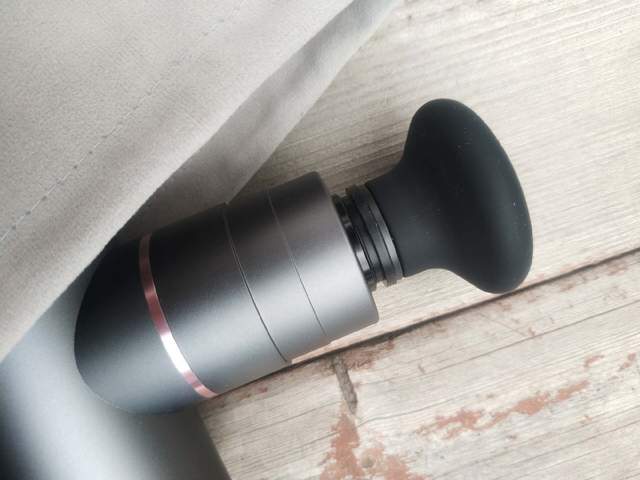 按摩头的安装位置可以看出筋膜枪的振幅,大约6mm左右,适中的振幅,也是更适合大众的设计。