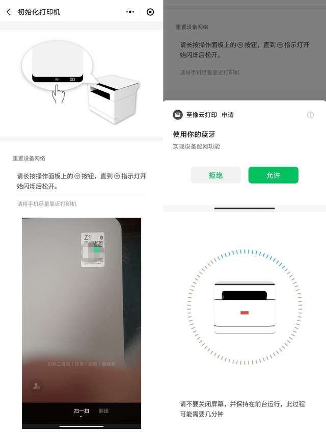 打印机存在印象中一直是商务设备的存在,包括复杂的功能,繁琐的设置,这次的联想至像Z1作业打印机在这块做到了极致,第一步使用微信扫描机身顶部的二维码进入配置界面,第二步则是选择Wi-Fi网络并输入密码,仅需两步即可搞定配网的难题,无障碍连接。除了支持Wi-Fi连接,还对蓝牙设备进行了适配,并支持PC端USB直连进行打印操作,最大程度省去了复杂的配网步骤,新手用户也能快速上手。
