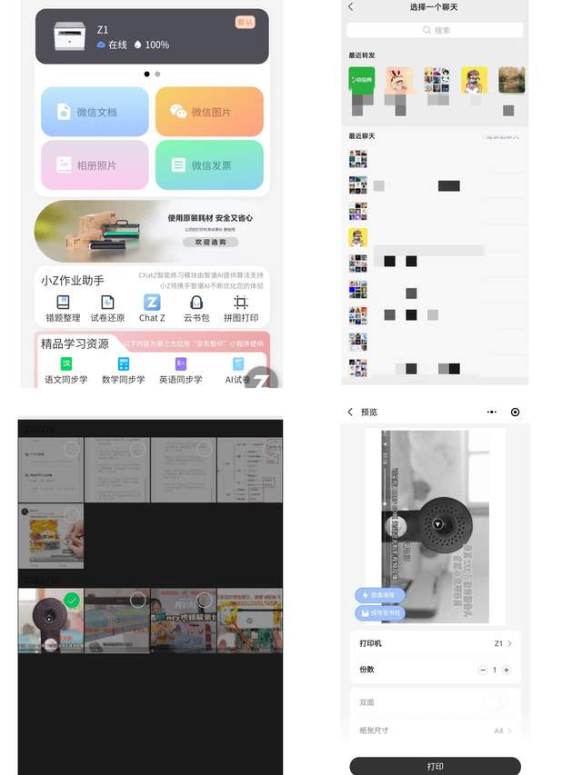 市面优质资源众多,联想至像Z1作业打印机同样是支持了京东智印和学而思试卷宝等被学校和家长广泛认同并使用的微信小程序进行合作