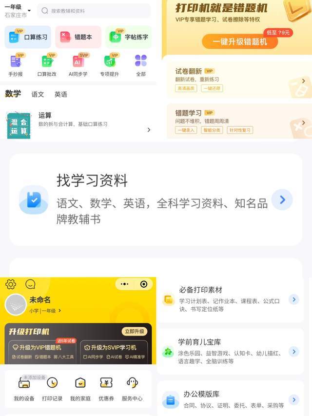 学生进步最快的秘诀不是有多好的老师,而是对自己错题吃得足够深,相信大家都深有感触,联想至像内容第一项就是错题整理功能,手机微信直接搜索“至像云打印”,那个就是,直接连接打印机即可深入了解功能,对于错题的记录采用拍搜一体进行,拍摄试卷,小程序对错题笔迹在线文档进行擦除,随即识别原题题干,过于难的题目还支持一键搜寻解题思路选项,循序渐进引导知识点。依附于打印机的软实力必须支持了一键打印,错题整理文档成册便于随时复习巩固。面对繁杂的作业科目和数量,在在线“云书包”打印材料分类收纳,并提供海量作业云端存储,定义分类和检索功能,随时查找。